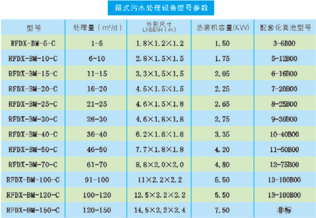 箱式污水凈化設(shè)備型號參數(shù):