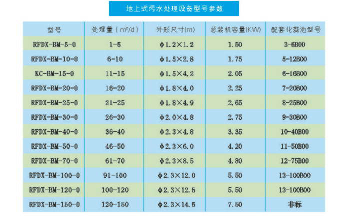 地上式污水處理設(shè)備型號(hào)參數(shù):